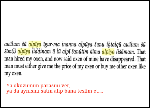 "Awīlum Šu alpiya igur-ma inanna alpiya Šunu ihtalqū awīlum Šu Šim(i) alpiya liddinam ū li alpi Šanutim kima alpiya lişamam.