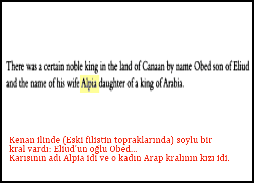 Sözcüğün bir yörede dişil, başka bir yörede eril olarak kullanılması veya cinsiyet tanımasına gidilmeksizin yararlanılması her zaman mümkün. Kenan topraklarında Kral Obed'in karısının adının Alpia olduğunu öğreniyoruz.
