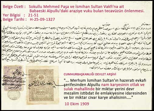 Yaklaşık aynı tarihlerde Mandıra ile Alpullu arasında Deve Konakları mevkiinde arazi anlaşmazlığı olduğunu dikkate alırsak otlakıye ve sulak bölgenin Karabatak'tan Deve Konakları bölgesine kadar uzanan yer olduğu sonucuna varabiliriz. Daha sonra buranın maliye arazisi sayılmasından da anlıyoruz ki aslında orası vakıf arazisidir. Demiryolu altındaki Samafor mahallesinin II. Selim'in kızı İsmihan Sultan'ın vakıf arazisi olma ihtimal var.