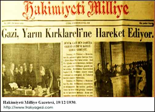 (Bk. http://www.trakyagezi.com/gazi-mustafa- kemal-ataturkun-kirklareli-ziyareti/).