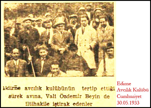 1933 yılında Edirne'de Avcılık Kulübü kurulduğunu görüyoruz. Fakat bu alışkanlık çok eski, belki Dördüncü Murat zamanına kadar uzanıyor. Trakya'da avlanma diye bir olgu var. Dördüncü Murat diyorum ama belki Bizans'a kadar ve hatta ondan öncesine uzanıyor.