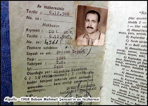 Avcılık Osmanlıdan gelen bir gelenek. Cumhuriyet döneminde de yeniden örgütleniyor ve "kulüp" olarak adlandırılıyor. Avcılık Kulübü. Bir ara babam da avcılığa merak salmıştı. Ruhsat alınması gerekiyordu. Mavi renkli üçe katlanan bir şekilde avcılık ruhsatı almıştı. Tüfeği var mıydı, bilmiyorum. Sanki bir ara tüfeği de vardı. Fakat çok uzun kullanmamıştı. O yıllarda avcılık hem bir hobi, hem de eve maişet sağlamanın bir aracı olarak görülüyordu.