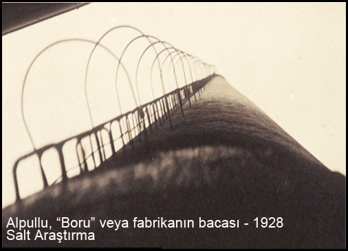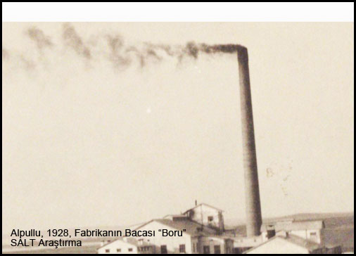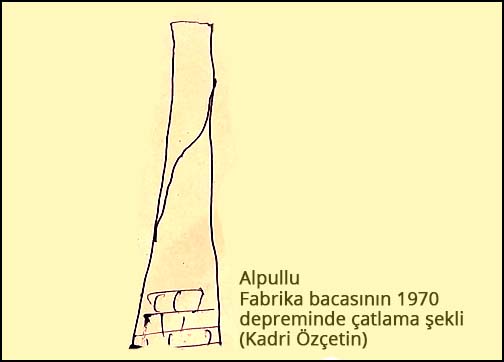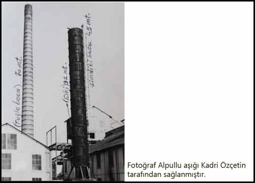 Daha sonra tuğla Boru'nun yerine saçtan kısa boylu başka bir "Boru/Baca" yapılmış. Kadri ağabey 32 metre uzunluğundaydı diyor. Fakat bazı ustalar şikayet etmişler. Bu kısa bacalardan çıkan duman ve partiküller Alpullu'nun havasını bozuyor diye... Gerçek durum nedir, bilmiyorum. Mühendis ve teknisyenler daha iyi bilir. Bir süre sonra bu saç baca da iptal edilerek yerine demirden başka bir baca yapılmış ve bu bacanın uzunluğu 45 metre imiş. Demir bacaya sevk edilen duman ters yönlerde çalışan iki aspiratörle destekleniyormuş. Kadri ağabey resmini not defterime çizdi, aynen alıyorum.