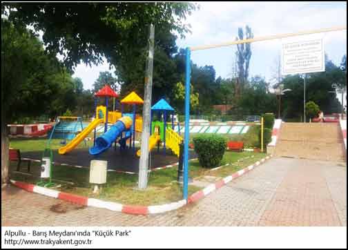 Belediye Parkı veya Barış Parkı'nda Atatürk heykeli, çocuk oyun parkı, kafe türü bir yer, oturma bankları ve doğal görünümlü küçük bir havuz var. Yaz aylarında burada düğün törenleri yapılıyor. Resmi bayram etkinliklerinin düzenlenme mekanı Barış Parkı aynı zamanda. İlk zamanlarda döşemesi aralıklı taşlardan yapılmış ve aralarından ot çıksın istenmişti. Sonra yürüme zorlukları ortaya çıkmış olmalı ki bu düzenleme iptal edildi. Her belediye başkanı Barış Parkı'na bir şeyler yapmaya çalışır. Nedeni göz önünde olmasıdır. Fakat parka fazla yükleme yapma estetiği bozar. Bu tür, bazı sorunları var... Bir çevre mimarının estetisyen gözüyle inceleme yapması, olaya el atması Park'a başka bir hava verecektir. Biliyoruz ki, aşure tatlısı güzeldir, fakat yanık kaymaklı sütlacın asaleti başka.
