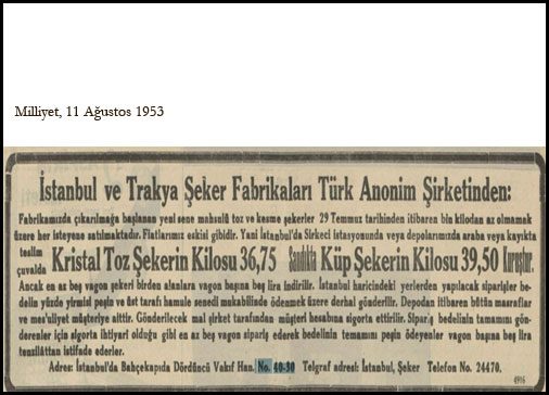 İstanbul ve Trakya Şeker, işletmenin merkezini İstanbul Sirkeci'de bulunan Dördüncü Vakıf Han olarak belirlemiş. 30-40 numaralı dairelerde ikamet ediyorlar. Ben bu rakamları üçüncü ve dördüncü kat olarak değerlendirmek istiyorum. O vakitler bu bölge "Sirkeci" olarak değil, Osmanlıdan gelen bir yaklaşımla "Bahçekapı" adıyla biliniyor. Telefonu, 24470... Telgraf adresi ise İstanbul Şeker...