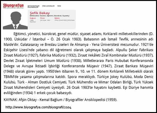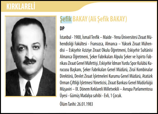 Özgeçmişi slaytlardaki kimlik kartında verildi. Kısaca belirtmek gerekirse 1900 doğumlu, 1983 yılında vefat etmiş. Önceleri Alpullu'da Ziraat Müdürü olmuş, daha sonra Fabrika Müdürü olarak görev yapmış. Almanya'daki Yena Üniversitesinin Ziraat Mühendisliği Fakültesinden mezun olmuş. O da bir müstagrip… Üç dönem Kırklareli milletvekilliği var. Vekilimiz, temsilcimiz... Jokey Kulübü, Moda Deniz Kulübü, Türk-Alman dostluk cemiyeti, Mühendis-Mimar Odaları Birliği, Ziraat Mühendisleri Cemiyeti üyesiymiş... Bu özgeçmişte benim için en ilgi çekici yön onun bir Alman muhibbi olması... İngiliz, Amerikan muhiplerini nasıl hoş karşılıyorsak onu da bu tutumundan dolayı hoş karşılamamız gerekiyor...