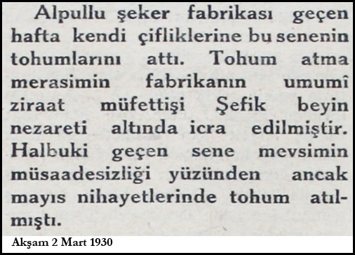 Edirne'de çıkan Milli Gazete'nin, 8 Mart 1934 tarihinde kendisiyle yaptığı bir röportaj var. Bu yazıda 1933/34 kampanya döneminde 140 bin tonluk pancar işleme kapasitesinin üstüne çıkarak 330 bin ton pancar işlediklerini, dünya şeker fabrikaları arasında bunu başaran başka bir kuruluş olmadığını söylüyor. Bunun yanında "amele koğuşundan" söz ediyor ki bu Saray binası olmalıdır. Lokanta ve mutfaktan söz ederken "fabrika amelenin yemek işini kendi üzerine almıştır" ifadesi dikkat çekiyor. Acaba daha önce çalışanların yemek ihtiyacı nasıl karşılanıyordu? Beş sınıflı mektebin iki ay sonra açılacağını duyuruyor. 1934 yılının Mayıs ayında... "Melas azaltma tesisi" diye bir olgudan söz ediyor. Ekim miktarını %35 civarında azalttıklarını söylemesi 1933/1934 döneminde fazla pancar işlemekten kaynaklanmış olabilir. Evet dünya birincisi olmuşlar ama kendi aralarında herhalde "bu kadarı da fazla" diye konuştular ki pancar üretimine fren getiriyorlar. "Pancar ekimi kısıtlanmış olsa da şeker üretiminin geçen seneden noksan olmayacağı" taahhüdünde bulunuyor. (Bu konuda Bakınız. Rafet Seçkin, T.C. nin İlk 15 yılı ve Alpullu Şeker Fabrikası, Ceren yayıncılık, 2019, ss. 220-221.
