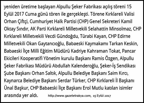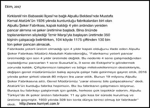 2017 yılında fabrikada 350 kişinin çalışacağı belirtilmiş... 104 köydeki 1175 çiftinden 130 bin ton şeker pancarı alınacağı söylenmiş.