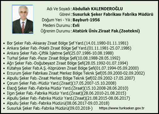 Atatürk Üniversitesi ziraat fakültesi mezunu. Alpullu'da önceleri bölge teknik şefi olarak çalışmış. Sonra müdür yardımcılığı yapmış ve müdür olmuş. Ayrıntılı bilgileri kimlik kartında.... Dört yıl aradan sonra fabrika onun zamanında 2017 yılında yeniden üretime geçmiş.