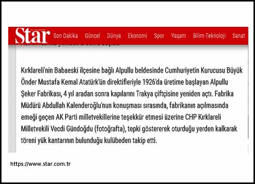 Gazete ve İnternet haberlerine göre fabrika açılırken bina önünde toplanan insanların İzmir marşı söylemeleri ilginç... Sınai faaliyetin politize edilmesi anlamına geliyor... Başka zamanlarda normal karşılanacak bir marş söyleme olgusu bu eylemle siyasi anlam yüklenmiş oluyor. Bunlar uygun olmayan davranışlar... Kendi kendimize veya kendi insanımıza İzmir Marşı söylüyoruz...