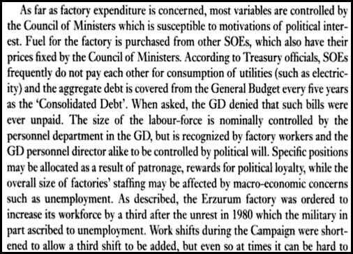 Fabrikanın verimli çalışıp çalışmadığı.... Yabancı uzmanlar şunu söylüyor: İstihdam kaygıları, her şeyin partinin elinde olması, üst yönetimin gözüne girme endişeleri gibi faktörler nedeniyle ekonomiklik ve verimlilik ilkeleri uygulanmıyordu. 1996 yılında Erzurum şeker fabrikasının itfaiye aracı tamir olması için Alpullu'ya gönderilmişti. İtfaiyeciler kendi aralarında şöyle konuşuyorlar ve gülüşüyorlardı: "nasılsa bizim paramız değil..." Kaynak: Catherine Alexander, Catherine Alexander, Personal States: Making Connections Between People and Bureaucracy in Turkey, sayfa, 69.
