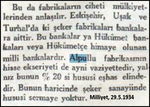 Fabrikanın avukatı, muhasebe müdürü, ziraat müdürü, pek çok milletvekili, muhtemelen İnönü fabrika hisselerine az veya çok sahipti. Bunu bilmiyoruz ve hiç bir zaman da öğrenemeyeceğiz.
