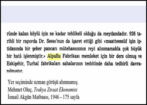 Blohm Roemer, Alpullu Şeker Fabrikasının hammadde tahmin değerlendirmesini yaparken, fabrikanın üretim havzasında bulunan Meriç-Ergene bölgesinde yetersiz yağmur miktarı nedeniyle esaslı sulama tesislerinin kurulmadığı takdirde üretimde her yıl büyük dalgalanmaların ortaya çıkabileceğini savunmuş (Roemer- Blohm, age, s.20).