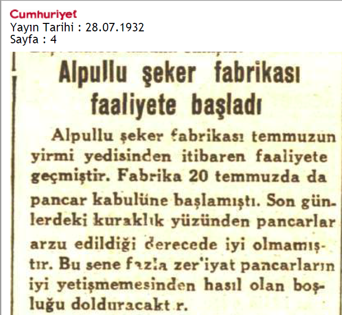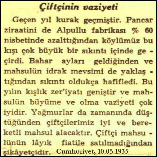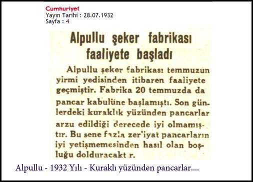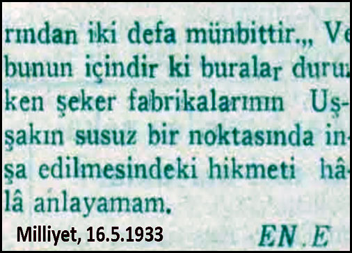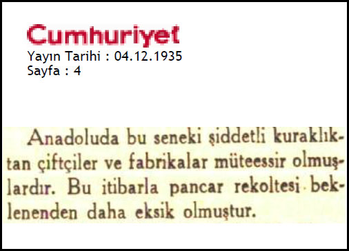 Gazetelerde 1932, 1934 yıllarında kuraklıktan şikayet ediliyor ve pancar ziraatinin %60 oranında azaldığından söz ediliyor. Alman uzman Roemer herhalde haklı... Fabrika çalışıyor, üretim yapılıyor ama verimsiz... Sistem, kendi ayakları üzerinde duracak, kendi kendisini döndürecek durumda değil, sürdürülebilir gözükmüyor. Sürekli biçimde kamu desteğine ihtiyacı var. Bir anlamda suni teneffüsle yaşatılıyor.