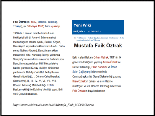 Ve.. Erguvaniler kitabından bir alıntı... "Mustafa Faik Bey'in oğlu Orhan İsviçre'de, diğer oğlu Adnan Paris'te okumuş. İkisi de kaymakam, sonra Orhan CHP'den milletvekilliği ve bakanlıklar yapmış. Orhan'ın oğullarından Faik, DPT Müsteşar Yardımcılığı, Hazine Müsteşarlığı vs. vs....."