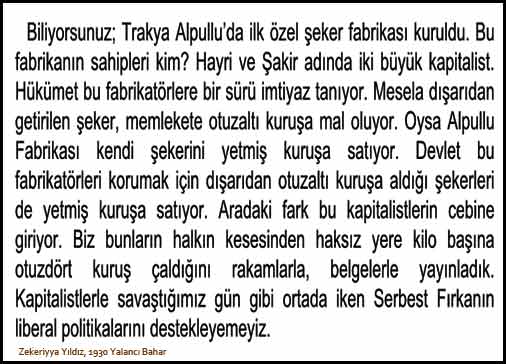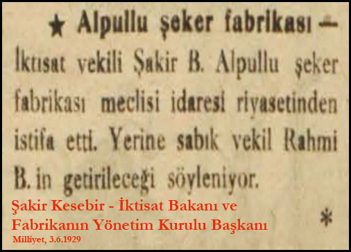 5- Şakir Bey diyor ki: Alpullu şeker fabrikasının sermayesi 750.000 liradır. Alpullu şeker ve ispirto fabrikaları ise üç milyon liradan fazla kıymettedir. Bu fazla sermayeyi şirket hükümet ve milli bankalardan temin etmiştir.