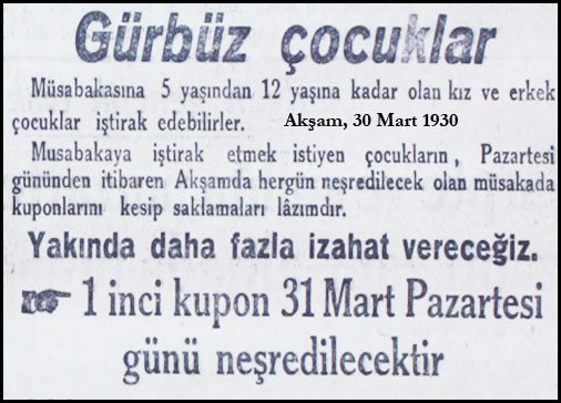 Çocuk Haftası: 23 Nisan tarihlerinde Gürbüz Türk Çocuğu'na ilave olarak çıkmış olan fevkalade sayılardır. Ankara; İstanbul : Çocuk Esirgeme Kurumu; Himayei Etfal Cemiyeti, 1 Teşrinievvel -1926