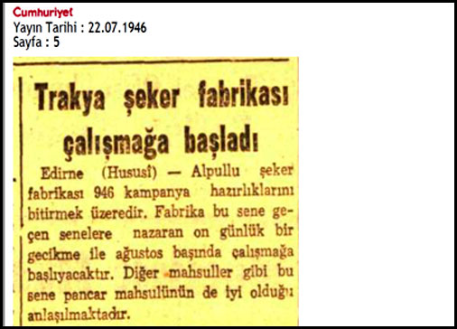 1946 yılındaki kampanyanın rekor düzeydeki üretim nedeniyle normal daha uzun süreceği hesaplanmış.