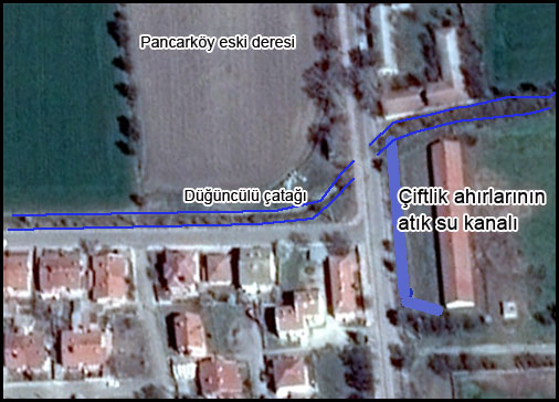 İlk zamanlarda Teliçi'nin ve Çiftlik ahırlarının pis suları doğrudan Pancarköy Deresi'ne verilirmiş. O zamanlar Çiftlik Mahallesinde kanalizasyon sistemi yoktu. Herkesin "hela çukuru" olur, pis sular orada toplanırdı. Çiftlik girişinde Düğüncülü Çatağına doğru uzanan, yola paralel bir başka çatak vardı. O çatak aracılığıyla Çiftliğin atık suları Düğüncülü Çatağına ulaşır ve oradan da Panacarköy Deresi'ne giderdi.