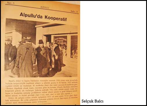 1930’lu yıllarda fabrika çalışanları yaşamlarını sürdürmek için gerekli gıda, bakkaliye ve diğer ihtiyaç malzemelerini yeterli ölçüde bulamıyorlarmış. Fabrika bu ihtiyacı gidermek için Alpullu Fabrikaları Mensubini Kooperatif Şirketi adıyla bir işletme kurmuş. İstasyondaki Gar Lokantası'nın karşısında Otel, Gazino, PTT birimlerinden oluşan büyük bina kompleksinin orta bölümünde Kantin adı verilen bir satış mağazası açmış. Çalışanların kumaş türü eşyalar hariç, her türlü ihtiyacı buradan karşılanıyormuş. İşletme 26 Haziran 1934 tarihinde onaylandığı vakit on yıllık dönemi ve 2000 lira sermayesi varmış. (Damlıbağ, 2017). Kuruluşu neredeyse fabrikayla yaşıt. Kapanıncaya kadar 50 yıl faaliyet göstermiş. Kantin'in açılış tarihini belirleyemedik. 1935 yılı olabilir.