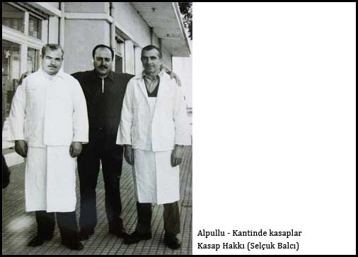 Yine Alpullu'nun hafızası Kadir Beye müraacat edelim: Kantinde bir tane Kantin Şefi varmış. Muhasebeci, Katip ve diğer elemanlar hepsi 10, 12 kişiymişler. İki kasap, iki sebzeci varmış. Bakkaliye, yoğurt, süt, ve peynir Sarımsaklı'dan her gün taze olarak gelirmiş. Veznede saksafoncu Kemal Gürer bey çalışırmış. Kızı benim sınıf arkadaşımdı. Aynı zamanda Şeker Fabrikasının orkestrasında saksafon çalarmış.