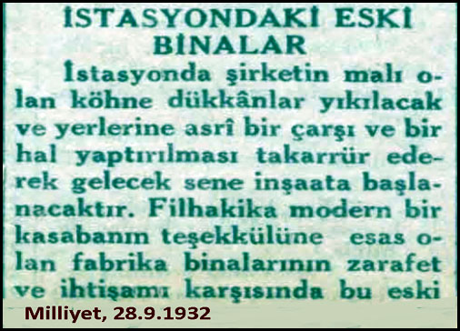 1926 ile 1932 arasında altı yıl var. Bu süre içinde Kantin'in bulunduğu yerde başka bir bina var. Hangi amaçla kullanıldığını bilmiyoruz. Demiryolu personelinin yatakhane binası olması ihtimal dahilinde. Bu bina yıkılıyor ve yerine Kantin-Otel kompleksi yapılıyor. Bunun için yan taraftaki resmi inceleyiniz.