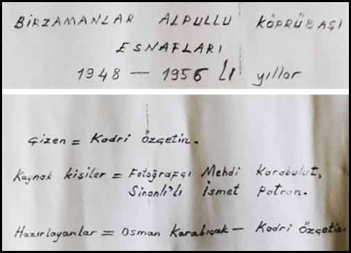 Köprübaşı'nda bazı dükkanları Rumlar işletirmiş. Özellikle içkili lokantaları veya meyhaneleri... İstanbul'un Balat semti meydanında Rumların meşhur Agora Meyhanesi vardır ya, Alpullu ve civar köylerinde yaşayan Rumların, Yahudi ve Ermenilerin meyhaneleri de Köprübaşı veya Satırbaşı'nda imiş. İçki illetini insanlarımıza onlar bulaştırmış olmalı.