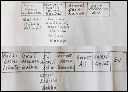 Kimden not aldığımı yazmaya unutmuşum. Anlatan hemşerim şöyle söylüyor: Çarşı vardı, Murtaza’nın kahvesi vardı. Mehmet Şener babası Ahmet Şener lokantası vardı. Üstünde ev vardı. Çorbacı Yusuf ağa vardı. Terzi Hakkı vardı. Atilla Akça’nın kayın biraderi idi.