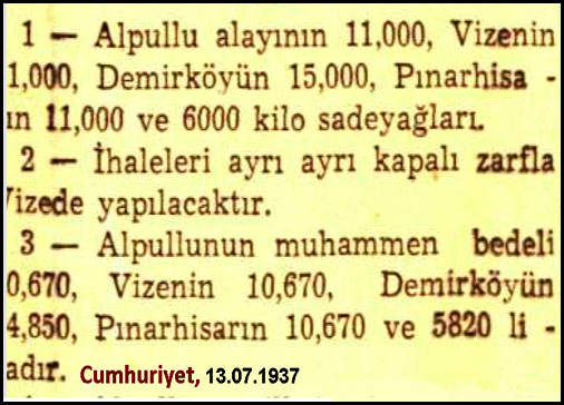 Şimdiki Kısmet Evleri'ne çıkan yolda Pancarköy Deresinin üzerinde bir köprü varmış. Ve bu köprünün hemen karşısında Alpullu'nun ilk fırını... Biz ona Eski Fırın diyoruz. O fırından Pancarköy yoluna doğru giderken tarla yolu boyunda 8-10 tane eski ev bulunuyormuş... O evleri de askerler almışlar tavla yapmışlar. Kaç at besleniyordu, bilmiyoruz.