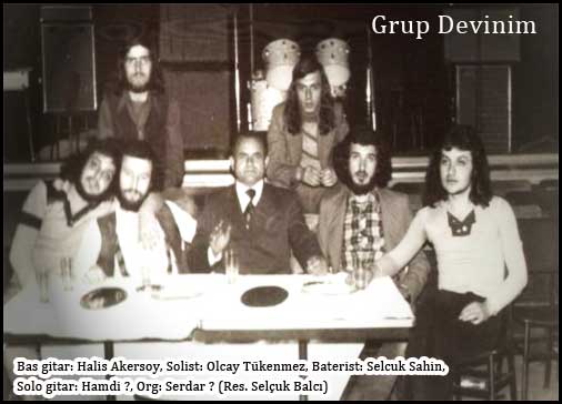 Grup Devinim. Grup 1977 li yıllarda kuruldu. Grup üyeleri: Bas gitar: Halis Akersoy (sağdan ikinci), fabrikadan Davut abinin damadı. Lüleburgaz'da müzisyenliğe devam ediyor. Solist: Olcay Tükenmez (arkada sağda oturan), Uzunköprülü. Sendika başkanı, bekçi başı Necati'nin kardeşi ile evli. Baterist: Selçuk Sahin (sağdan birinci), Edirneli, maalesef kendisini kaybettik. Solo gitar: Hamdi ?, (soldan birinci), akordiyon çalan rahmetli yilmaz amcanin yeğeni. Org: Serdar ? (soldan ikinci, yelekli), Edirneli, oda artik aramizda olmayanlardan."