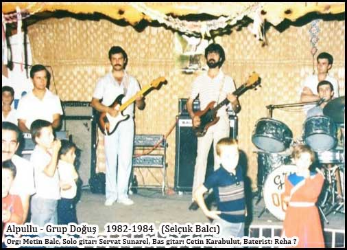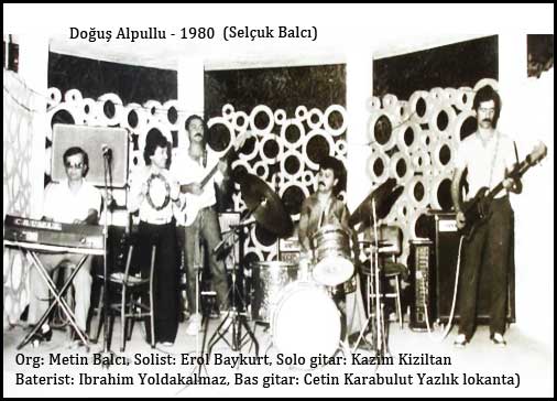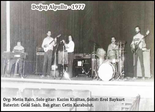 Doğuş Alpullu Orkestrası: Doğuş Alpullu’nun kuruluş tarihi 1977. Grup üyeleri soldan sağa: Org: Metin Balcı, Serbest meslek sahibi. Uzun yıllar müziğe devam etti, iki yıldır müziği hobi olarak sürdürüyor. Solo gitar: Kazım Kızıltan, Bandırma’da bir oyun solonu işletiyor ayrıca üç çocuk sahibi. Solist: Erol Baykurt, Erol abi Alpullu seker fabrikasından sonra Ankara’ya yerleşti. Kendisini kısa süre önce (2005) kaybettik. Baterist: Celal Şanlı, Celal abi İstanbul’da halen müzisyenlik yapıyor. Bas gitar: Çetin Karabulut, Çetin abi halen İstanbul’da müzisyenliğe devam ediyor. Boğazda çok nezih bir mekanda çalışıyor. Doğuş Alpullu fotoğrafı Teliçi’nde sinema salonunda çekilmiştir.