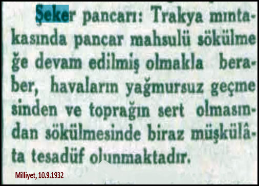 1939 üretilen pancarın kilosunun 1 kuruş olduğunu öğreniyoruz. 10 kg pancardan 1 kg şeker üretiliyor. Hammadde maliyeti 10 kuruş satış fiyatı 60 kuruş...