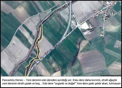 Yeni Pancarköy deresi, eski dereden ayrı bir kol olarak 1967-68 yıllarında açılmış. Çocukluk yıllarımızda var olan Mavi Göl ondan sonra oluşmuş.