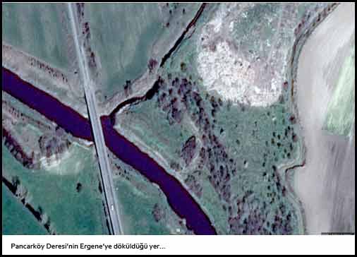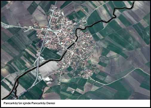 Pancarköy'ün içine giriyor, Pancarköy Deresi veya Çayı adını alıyor.