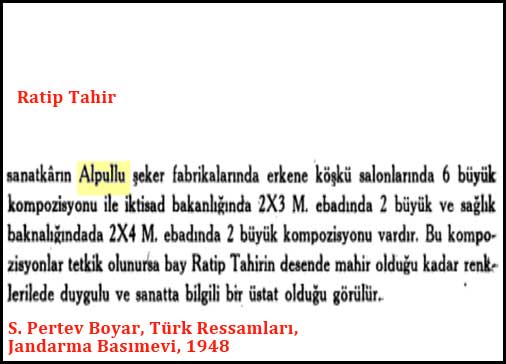 Alpullu ve Şeker Fabrikasıyla ilgili yağlı boya resimlerini yapan kişi. Yıl 1934... Alpullu'da atılım yapılan yıllar. Şeker stadı yapılmış, Ergene Köşkü açılmış, Saray Binasının inşaatı bitmiş... Kantin faaliyete geçmiş...