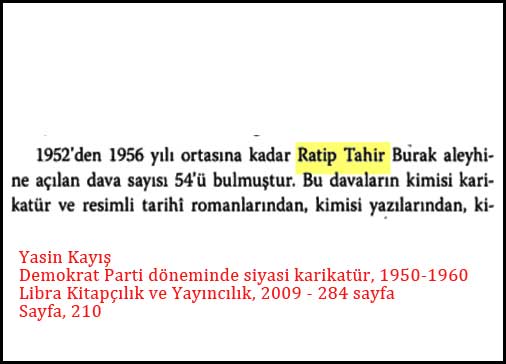 11 Nisan 1957: Halk gazetesi sahibi Ratip Tahir Burak, bir karikatürü nedeniyle tutuklanmış ve 16 ay hapis cezasına mahkum edilmiş. İstanbul'da Paşakapısı Cezaevi'nde yatmış.