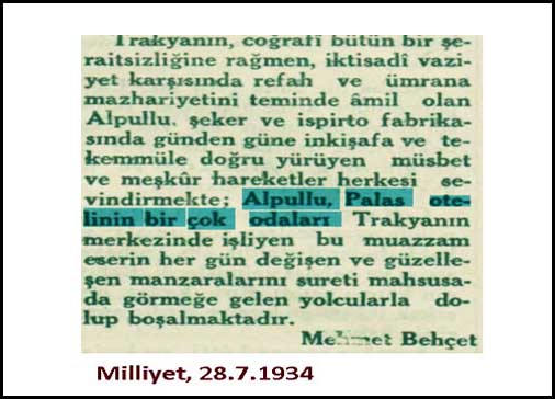 Babam burada aşçılık yaparken hemen üst katında yer alan otelde kalıyormuş. Üst kat otel, altı mutfak... Otel diyoruz ama aslında daha doğru terim, lojman... Eskiler "misafirhane" derlerdi... Sanırım "parayla kalınan otel" biçiminde hiç kullanılmadı. Misafirhane sözcüğünü daha moderen bir şekilde ifade etmek için "otel" diye isimlendirmişiz. Bugün dahi fabrikanın lojmanı olarak kullanılıyor.