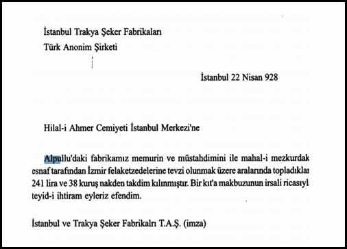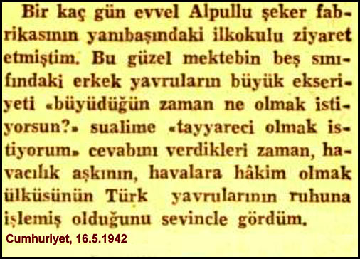 Öyle anlaşılıyor ki, fabrika müdürü Şefik Bey çiftçilerin pancar paralarından belli oranda kesinti yaparak bu parayı topluyor ve Alpullu Pancarcıları adına Tayyare Cemiyetine bağışlıyor. Biraz can sıkıcı ama, vatan savunması daha önemli... Acaba kendisi, kendi cebinden ne kadar bağışta bulundu... Keşke gazetelerde bu yönde de haberler çıksaydı.