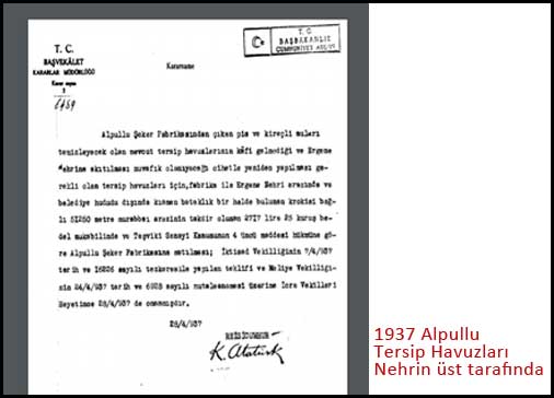 Fabrikadan çıkan pis ve kireçli suları temizlemek için yapılan havuzlar....Tersip sözcüğü durultma, tortulardan temizleme, süzme anlamına geliyor. Fabrikanın ilk tersip havuzları neredeydi bilmiyoruz. 1937 yılında önemli bir gelişme oluyor tersip havuzlarının Fabrika ile Ergene Nehri arasındaki bataklık alana yapılması kararlaştırılıyor. Demiryolu altındaki 50 dönümlük arazi Sinanlılı sahiplerine 2700 TL ödenerek satın alınıyor (Seçkin, 2019, s. 177). Bir anlamda "kamulaştırılıyor". Kamulaştırma maliyetinin metre karesi 6 kuruşa geliyor. Atatürk'ün başkanlığını yaptığı İcra Vekilleri Heyeti'nin karar tarihi 28.04.1937...