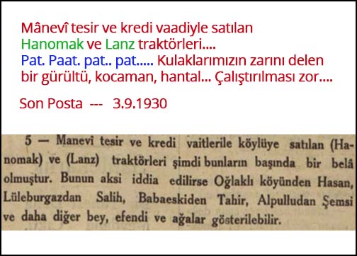 Fakat biz biliyoruz ki bu köylüye 30’dan fazla Hanomak makinesi satılmıştır. Hem de tesir yapılarak.