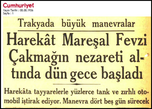 Mareşal Fevzi Çakmak bugün Babaeski’ye hareket ederken kendilerine Sirkeci’de askerî merasim yapılmıştır. Hayrebolu civarında birinci ordu müfettişi Orgeneral Fahreddin Altay’ın idaresinde başlıyan manevranın bir taraf kuvvetlerine Istanbul Kumandanı Korgeneral Halis, diğer taraf kuvvetlerine İkinci ordu kumandanı Korgeneral Sabit kumanda etmektedir.