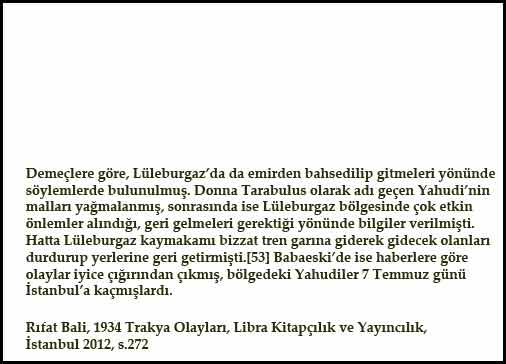 Olaylar Tekirdağ, Edirne, Kırklareli, Babaeski, Lüleburgaz ve Çanakkale'de aynı zaman diliminde başlıyor... Vikipedia'ya bakacak olursak Nihal Atsız ve Cevat Rıfat Atilhan'ın Yahudilere karşı ırkçı yazılar yazmaları ile halkın tahrik olması sonucunda vuku buluyor. O yazıları kim okuyor... Kaç kişi okuyor... Asıl neden Tanzimat'tan beri azınlıklara tanınan ayrıcalıklar nedeniyle serpilip büyüyen ve kendilerini saklayan gizli Yahudilerin piyasaya hakim olup insanlarımızı sömürmeleri... Nedense bu olgu gözlerden uzak tutulmaya, arka plana itilmeye çalışılıyor.