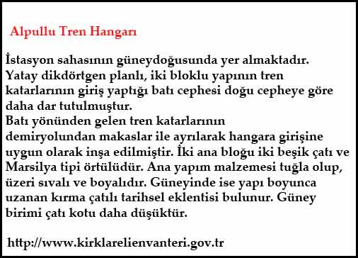 Alpullu'daki tren hangarı bu amaçla kullanılıyor. Eskiden kara trenlerin bakımı yapılırken şimdilerde modern lokomotifler çekiliyor bu hangara...