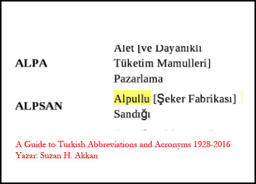 Şeker fabrikası bünyesinde memurlar bir ara kendi aralarında yardımlaşma sandığı kurmuşlar. Ne zaman kurulmuş, kaç sene sürmüş tam bilinmiyor. Fakat bu sandığın bir kısaltması varmış. ALPSAN denmiş adına. Açılımı "Alpullu [Şeker Fabrikası]Sandığı...