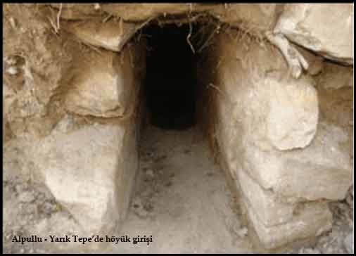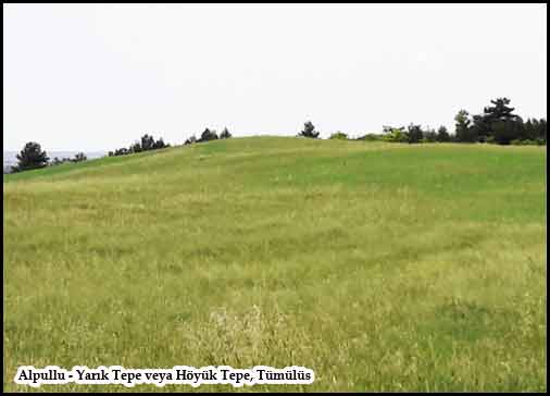 "Alpullu tümülüsü, 1936 yılında Prof. Dr. Mansel tarafından kazılmıştır. Bu tümülüs 7 m. yüksekliğinde, 50 m. çapındadır. Tümülüsde herhangi bir mezara rastlanılmamıştır, fakat tümülüsün altında doğal zeminden 0,25-0,30 m. aşağıda, Tunç Çağı kültürlerinden birisinin yerleşim yeri bulunmuştur."