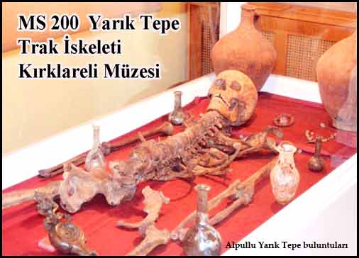 "lahit içerisinden genç bir kadın ile yaşlı bir erkeğe ait olduğu belirtilen iskeletlerin çıkarıldığını anlattı. İskeletlerin müzede sergilenmesine karar verildiğini dile getiren Kırklareli Müze Müdürü Derya Balkan, ziyaretçilerin iskeletlere yoğun ilgi gösterdiğini söyledi. Kırklareli Müze Müdürü Derya Balkan, özel vitrin içerisinde sergilenen iskeletlerin, geçmişin hatırlanması açısından önemli olduğunu ifade etti. Lahitten iskeletlerin yanında bulunan pudra kutuları, su testileri, kemik tarak ile madeni eserlerin de çıkarıldığını aktaran Balkan, "İskeletlerin milattan sonra İkinci Yüzyıla ait olduğu belirtti. Kadına ait cesedin, lahite erkek cesedinden 50 yıl sonra konulduğu tahmin ediliyor. İskeletlerle birlikte lahitten çıkarılan eserler de müzemizde sergileniyor. 1993 yılından bu yana müzemizde sergilenen erkek ve kadın iskeleti, ziyaretçiler tarafından ilgiyle inceleniyor."