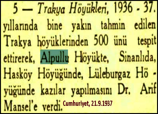 Alpullu Höyüğü: Kırklareli Đli, Babaeski Đlçesi’nin, Alpulu Köyü sınırları