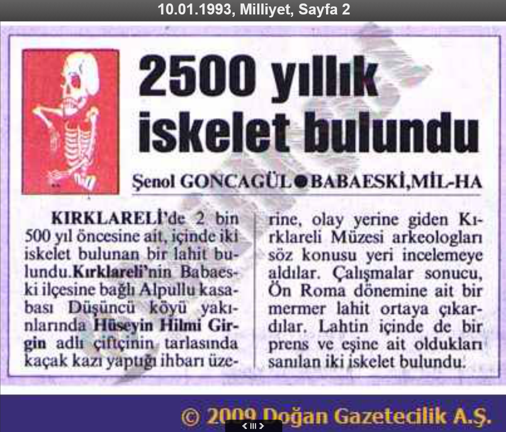 Bin Yıllık İnsan İskeletleri İlgi Çekiyor, http://www.demokrattrakya.net/haber-2010-bin-yillik-insan-iskeletleri-ilgi-cekiyor.html (15.8.2018).