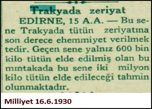 Trakya'da tarım çeşitlendirilmek ve zenginleştirilmek isteniyor. Bunun için Alpullu Şeker Fabrikası bir taraftan da pamuk ekim denemeleri yapıyor ve bu çalışmalar üç yıl sürüyor. Olumlu sonuç alınmamış olmalı ki arkası gelmiyor (Seçkin, 2019, s. 122).