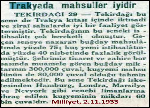 Trakya 1920'li yıllardan önce tahıl olarak arpa, yulaf, buğday, tütün, afyon, darı, mercimek tarımı yapılan bir yer. 1926'dan sonra pancar tarımı başlıyor. 1930'lu yıllara geldiğimizde Pancar tohumu ve Ayçiçeği gündeme geliyor. Sonraki yıllarda kanola...
